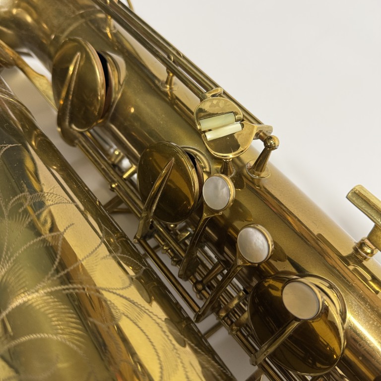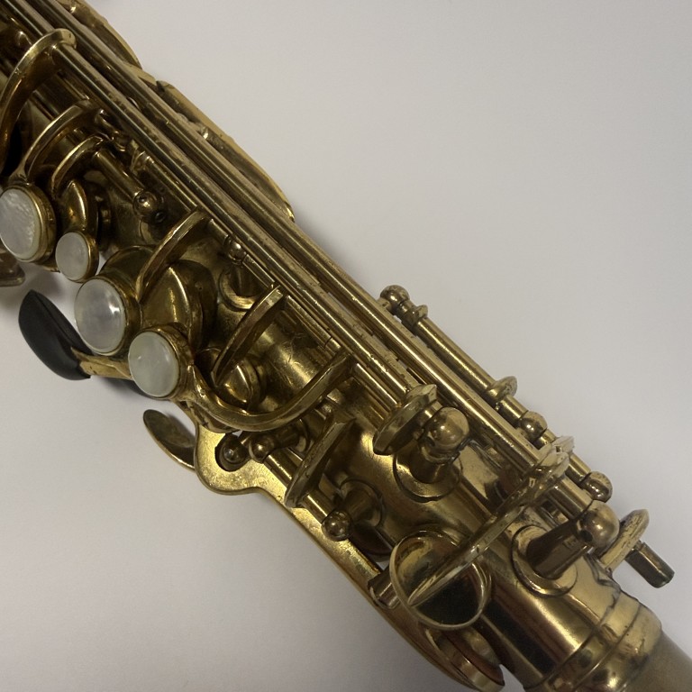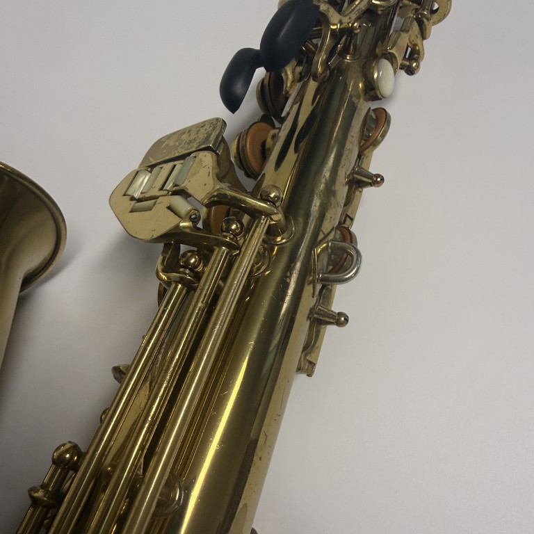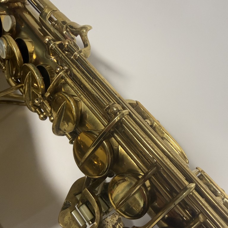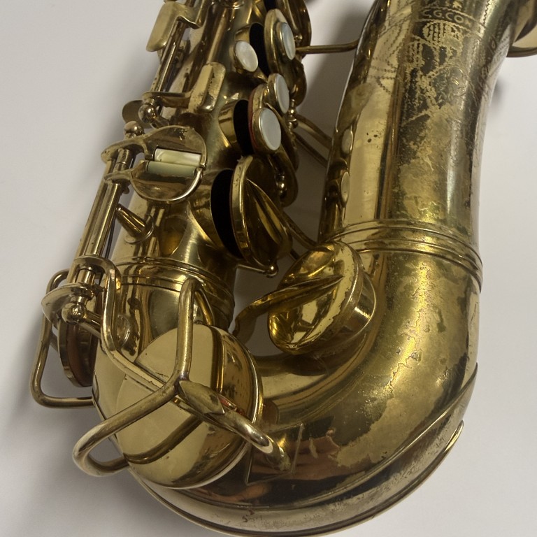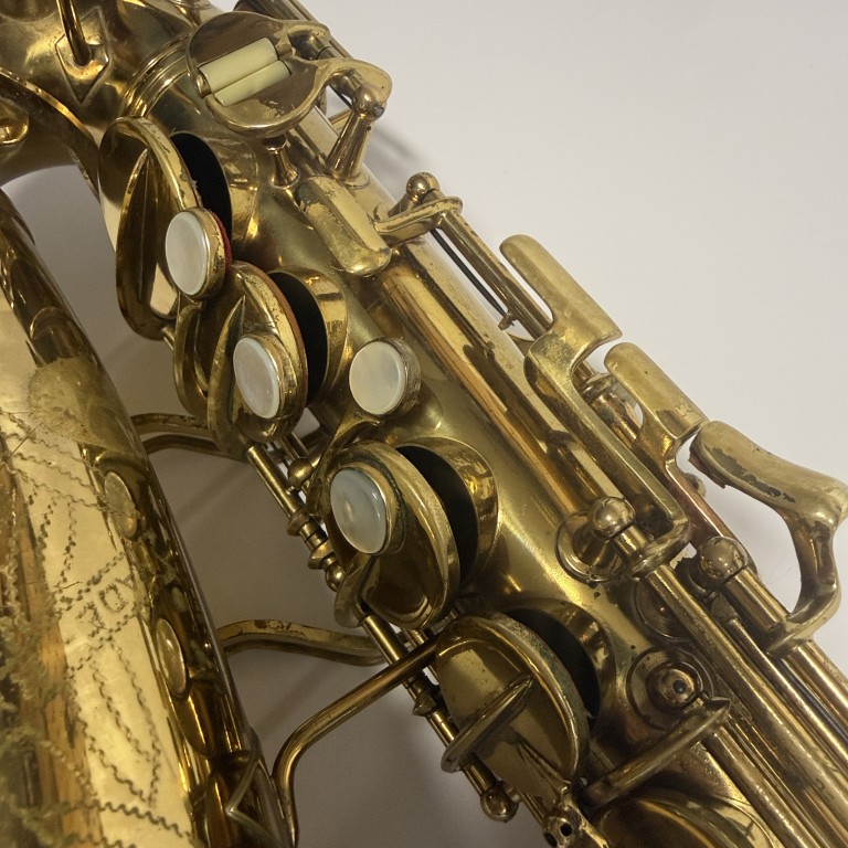 Conn 6M's are legends in the saxophone world and have been played by some the the best players ever. They have a sweet sound and good ergonomics. This one is from 1953 (SN 356K), and has a mixture of older and newer pads and was set up by me a few years ago, but not played since. It still seals perf