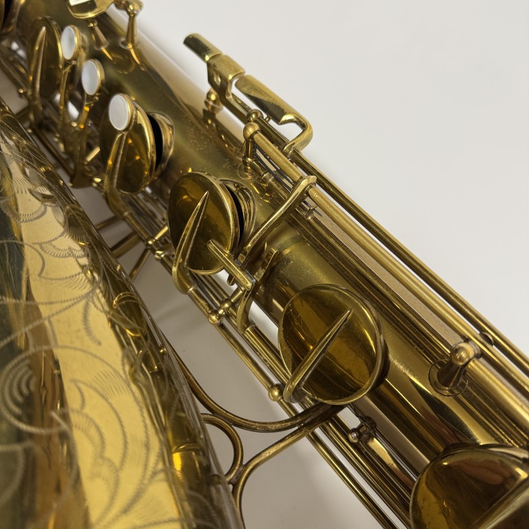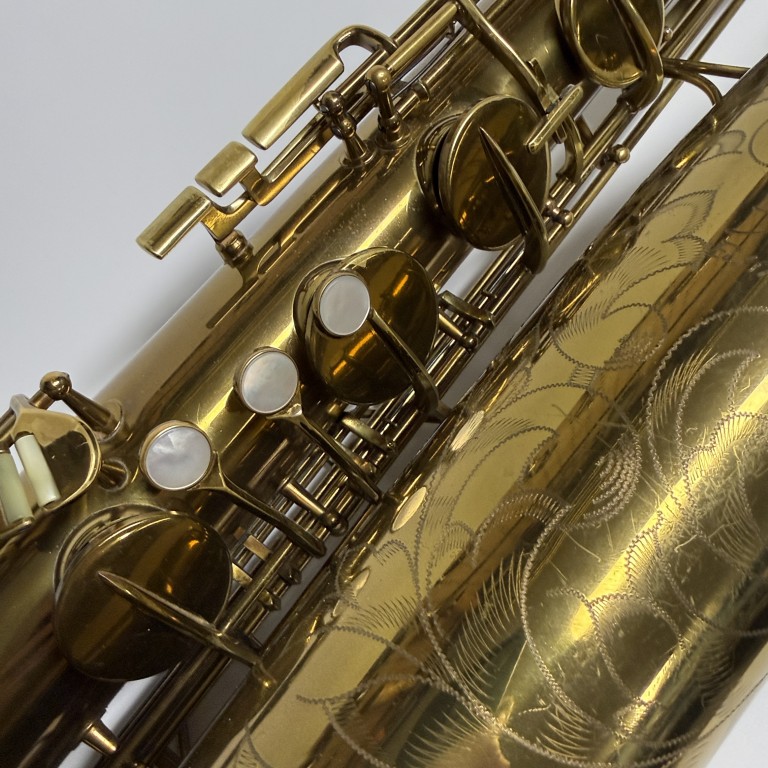 It hurts me a little to sell this horn as it was my personal horn as well as my first baritone sax. I am selling it because it I came across a Conn New Wonder II that I like just a little better. But trust me, it's close. It took me weeks to decide. The serial number (186K) dates it to 1953. It stil